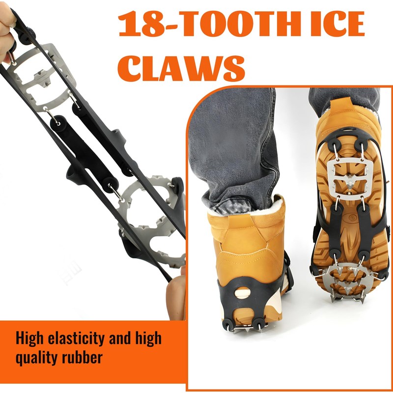 2 x stainless steel crampons (TPR rubber ring + 18 stainless steel spikes).