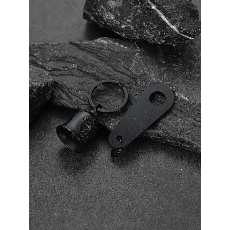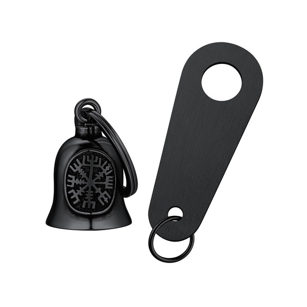 FaithHeart Viking Vegvisir Motorcycle Bell with Hanger for Bikers, Mens Compass Guardian Key Chain Luck Bell, Lead-Free Stainless Steel Keyring Accessories