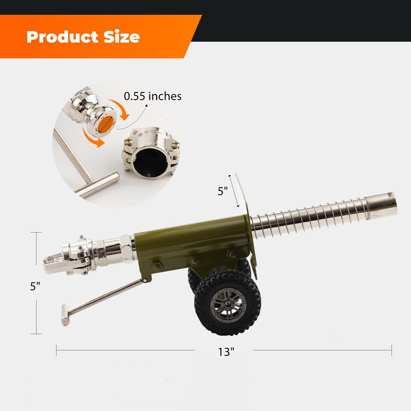 - Constructed from stainless steel, this firecracker artillery cannon guarantees long-lasting durability