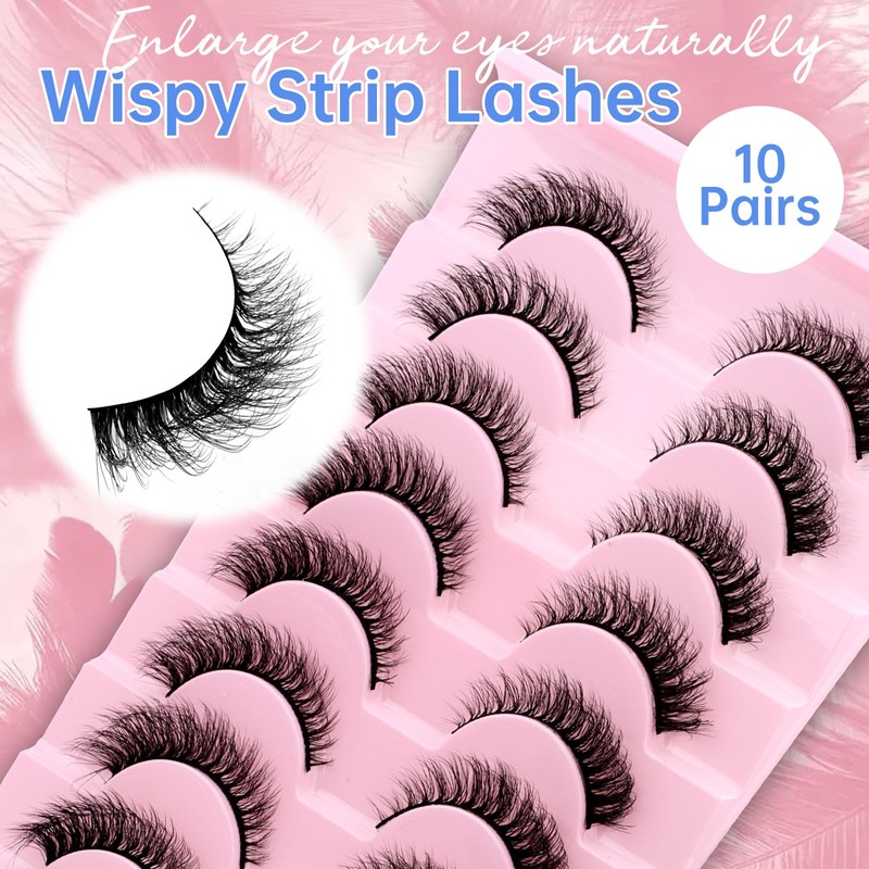 Fake Eyelashes Wispy Strip Lashes False Eyelashes Soft False Lashes by GEMERRY(10 Pairs, A03)