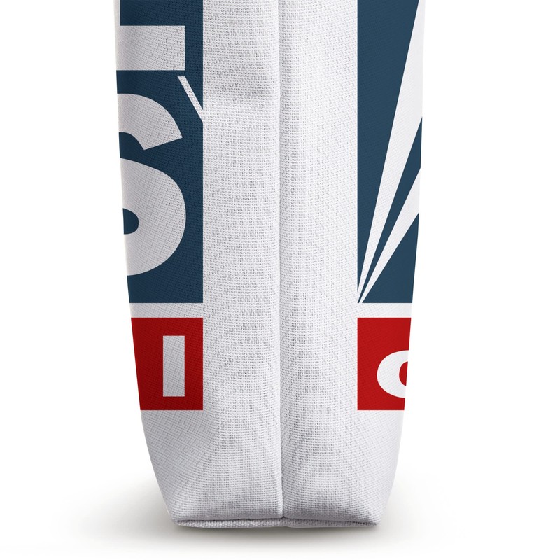• 16” x 16” bag with two 14” long and 1” wide black cotton webbing strap handles.