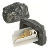 Key holder that looks just like, well a rock Ingenious way to hide key 'in plain sight' so you or family members are never locked out again Molded poly-resin matches real rock in size, shape, texture,color weight weatherproof/windproof Hidden tray underneath holds house, car or other keys up to 2-3/8"-length, 1" wide Goes 'undercover' among shrubs, grass or landscape rocks/wood chips; 3-3/8"L x 2"W x 1-1/4"H, 4 oz