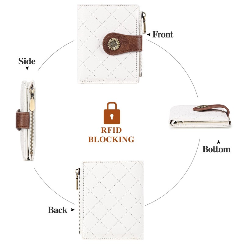 - 【HIGH QUALITY MATERIAL】 - Made of high quality microfiber leather, sleek zipper, Rhombus grid car line design and unique buttons, this small wallets woman is compact but small enough to fit in your coat pocket or crossbody bag. The best way to avoid a bulky wallet.