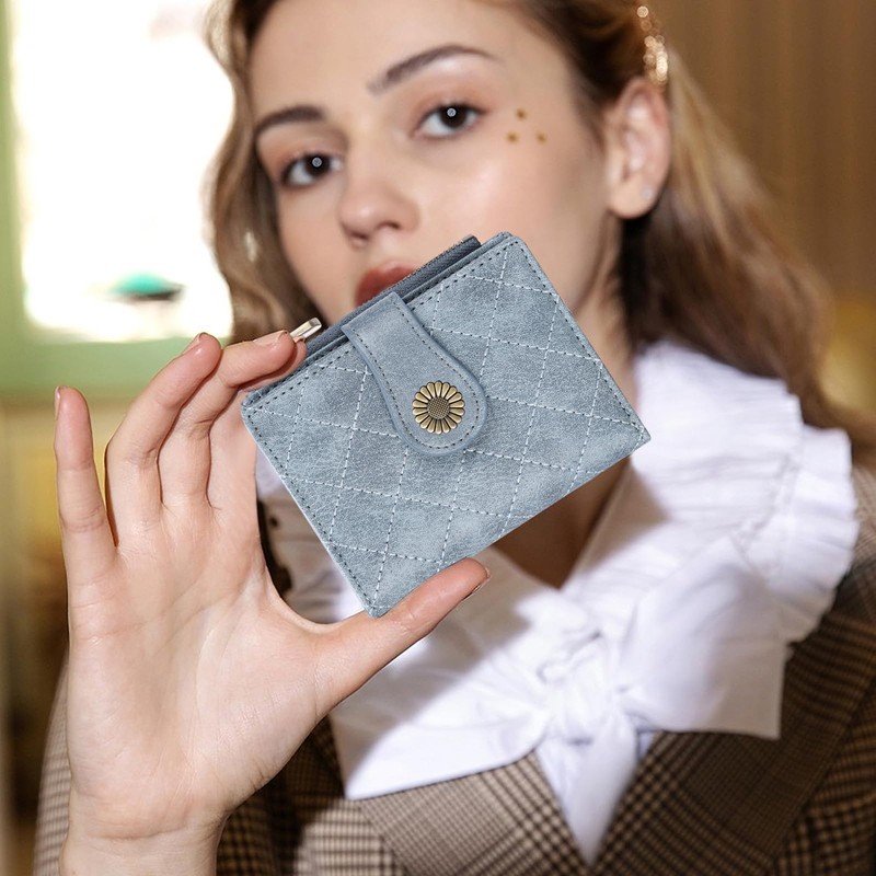 - 【HIGH QUALITY MATERIAL】 - Made of high quality microfiber leather, sleek zipper, Rhombus grid car line design and unique buttons, this small wallets woman is compact but small enough to fit in your coat pocket or crossbody bag. The best way to avoid a bulky wallet.