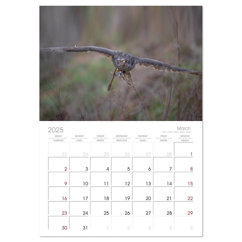 - DESIGN - 12 unique pictures, large monthly grid for planning with dates in 5 languages, including Spanish and French. 14 Month Calendar (Jan 2025 - Feb 2026).