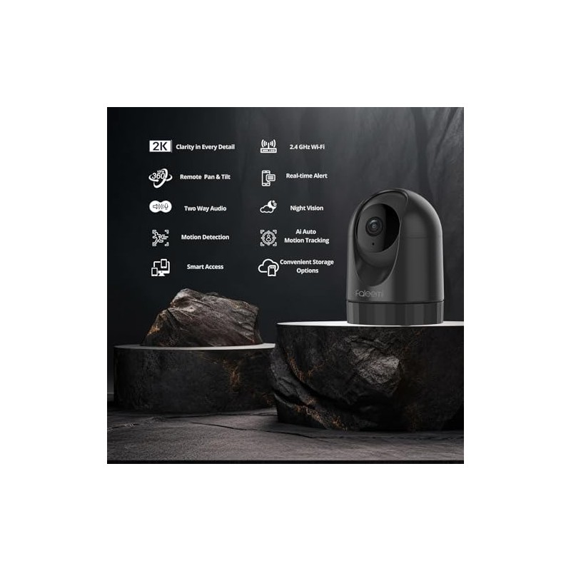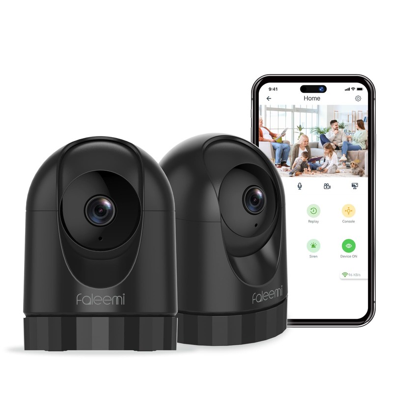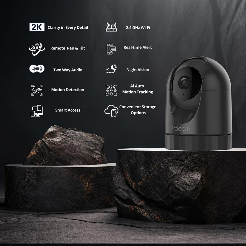 faleemi 2K Pan/Tilt Indoor WiFi Security Camera with Motion Detection & Auto Tracking, Night Vision, 2-Way Audio, Siren, SD/Cloud Storage (1, Black)