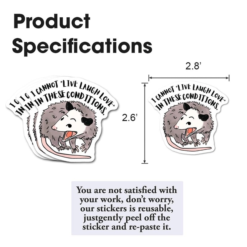 FALIMITLESS I Cannot Live Laugh Love in These Conditions Stickers 3Pcs Funny Opossum Sticker Possum Sarcastic Stickers Vinyl Waterproof Decals for Notebook, Tumbler, Laptop and Water Bottle