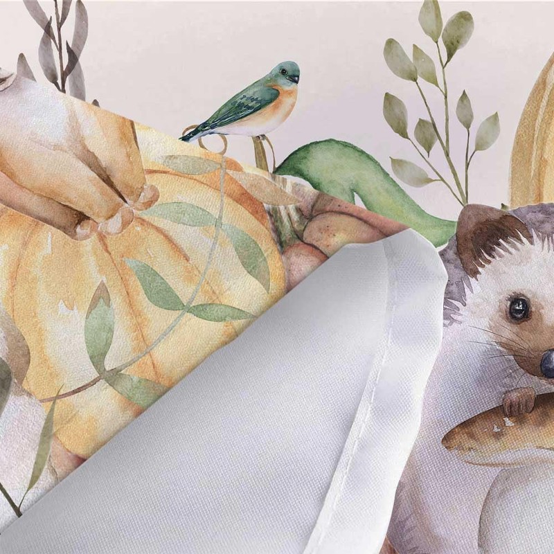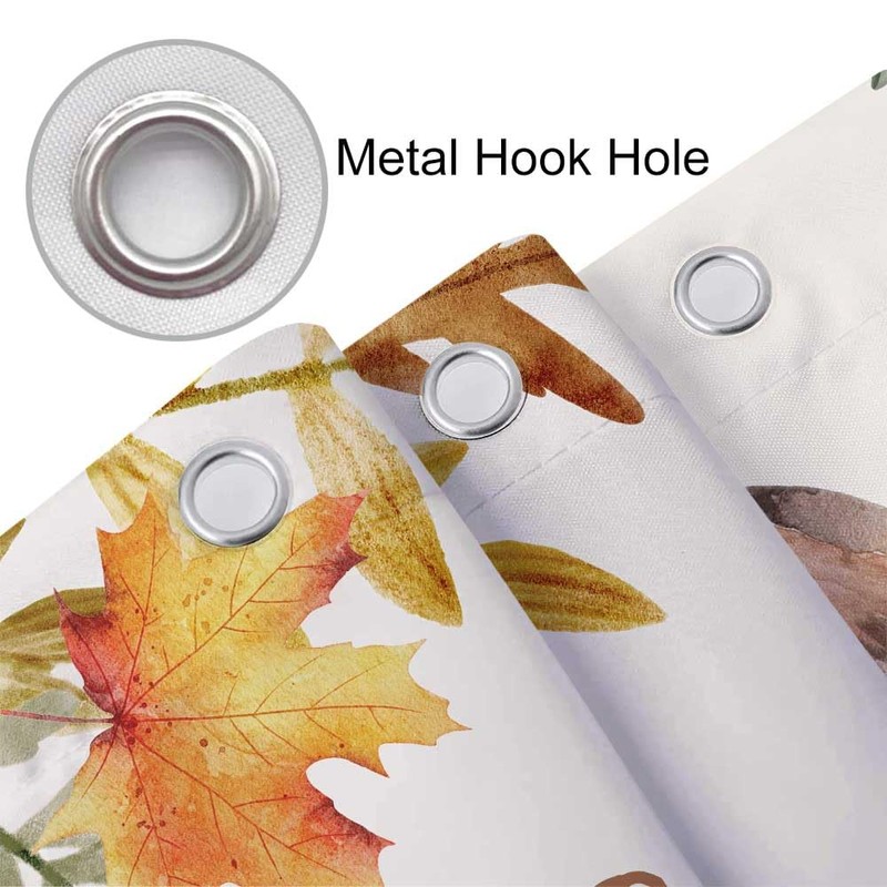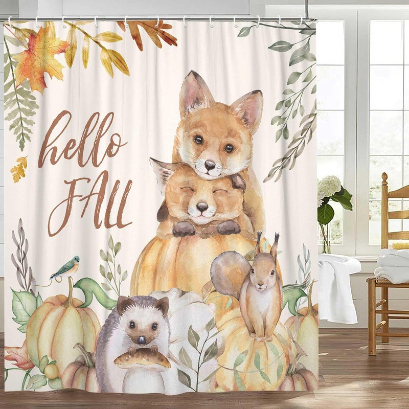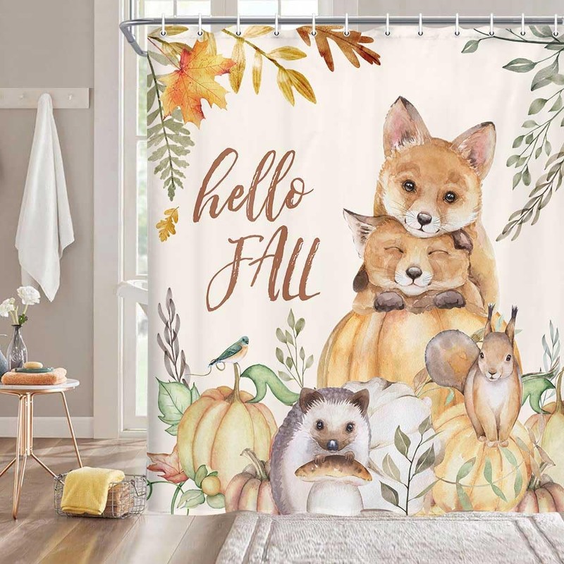 Fall Animal Shower Curtain, Autumn Animals Fox Hedgehog Squirrel Maple Tree Leaves Pumpkins Mushroom Waterproof Fabric Shower Curtain, Rustic Animal Bathroom Shower Curtain with 12PCS Hooks, 70X70IN