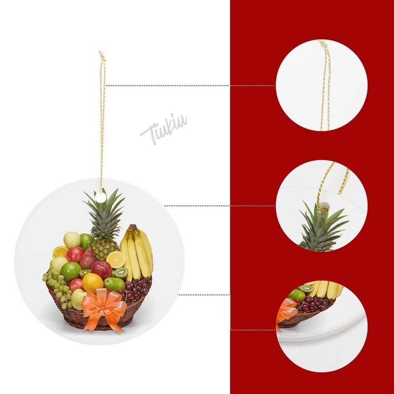 Fall Fruit Basket Ornament Round Christmas Tree Hanging Decoration Housewarming Gifts 3 inch Xmas Souvenir for Friends and Families Made in USA