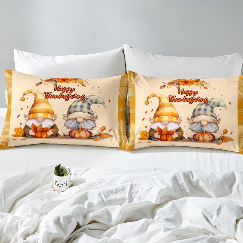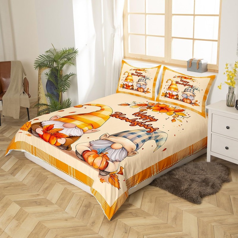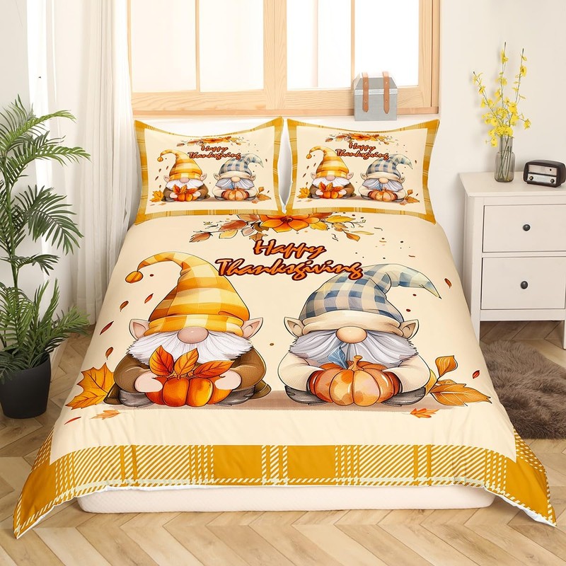 Fall Gnomes Duvet Cover Set King Size, Thanksgiving Day Harvest Theme Bedding Set for Kids Boy Girl, Autumn Leaves Sunflower Comforter Cover Soft Polyester Quilt Cover with 2 Pillowcases,No Comforter