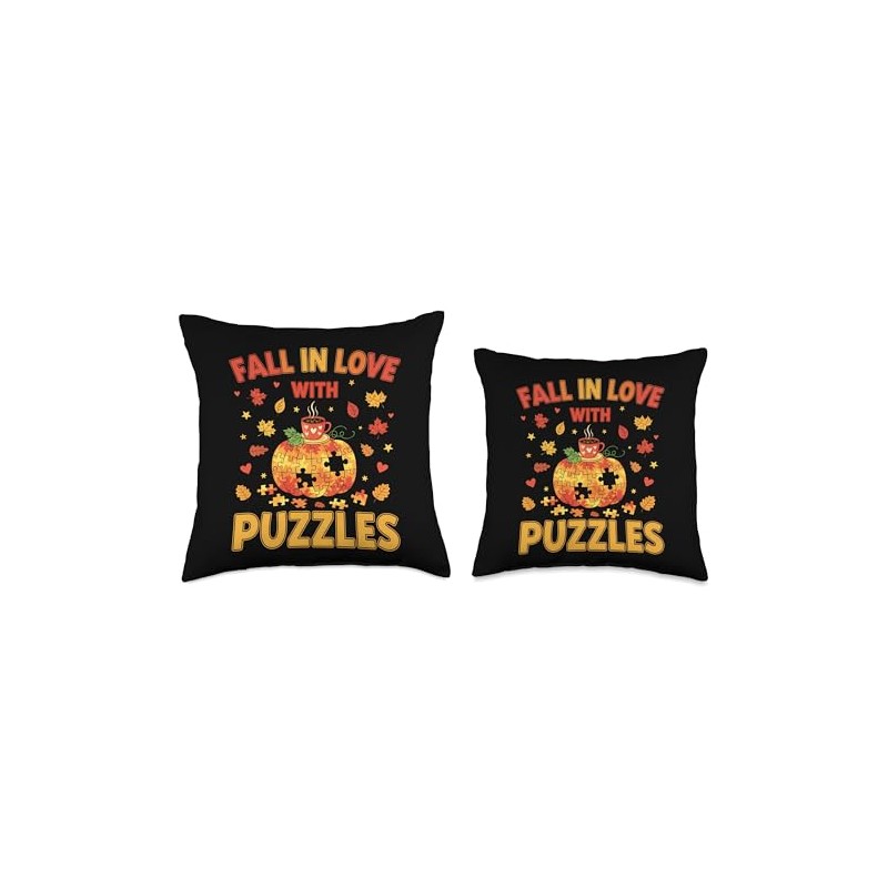 Fall in Love with Puzzles Thanksgiving Autumn Pumpkin Pie Throw Pillow