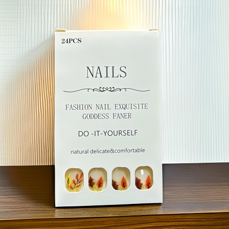 • Easy to Use:Autumn leaf fake nails with glue sticker can get your favorite manicure in just 5 minutes without waiting at the nail salon. Some simple steps allow you to get the same impressive professional effect at home