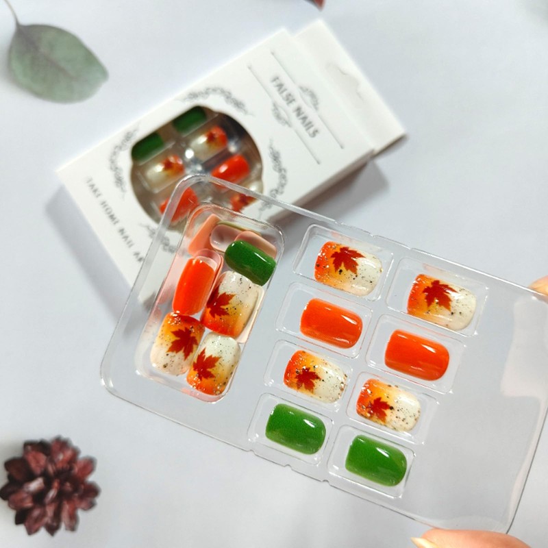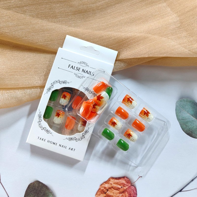 - Autumn Maple Design:Adorned with glitter maple leaf patterns in popular and trendy colors. These glossy artificial nails can be matched with almost any outfit, fully demonstrating a fashionable style