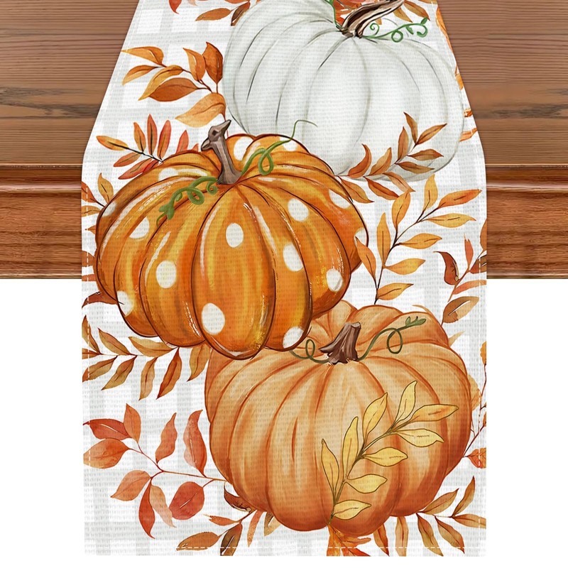 • 【Fall Decoration for Home】2024 New and diverse pumpkin patterns table runner complement the beautiful sunrise and sunset, perfect for fall kitchen dining daily use themed Thanksgiving, party decoration, family dinner, graduations, holiday celebration and more.