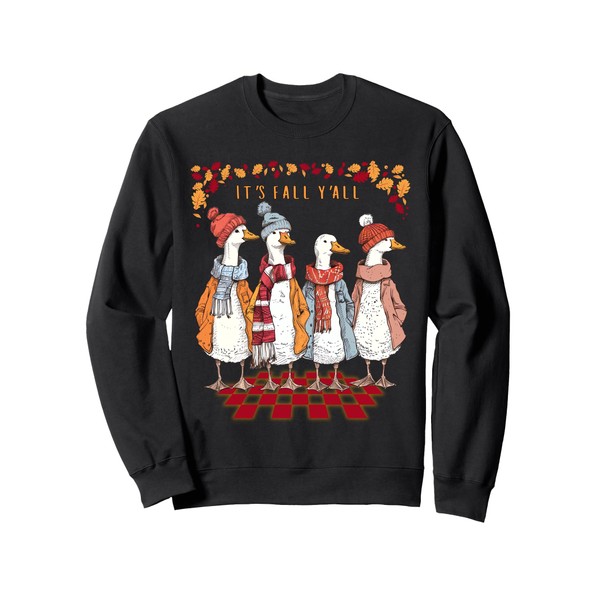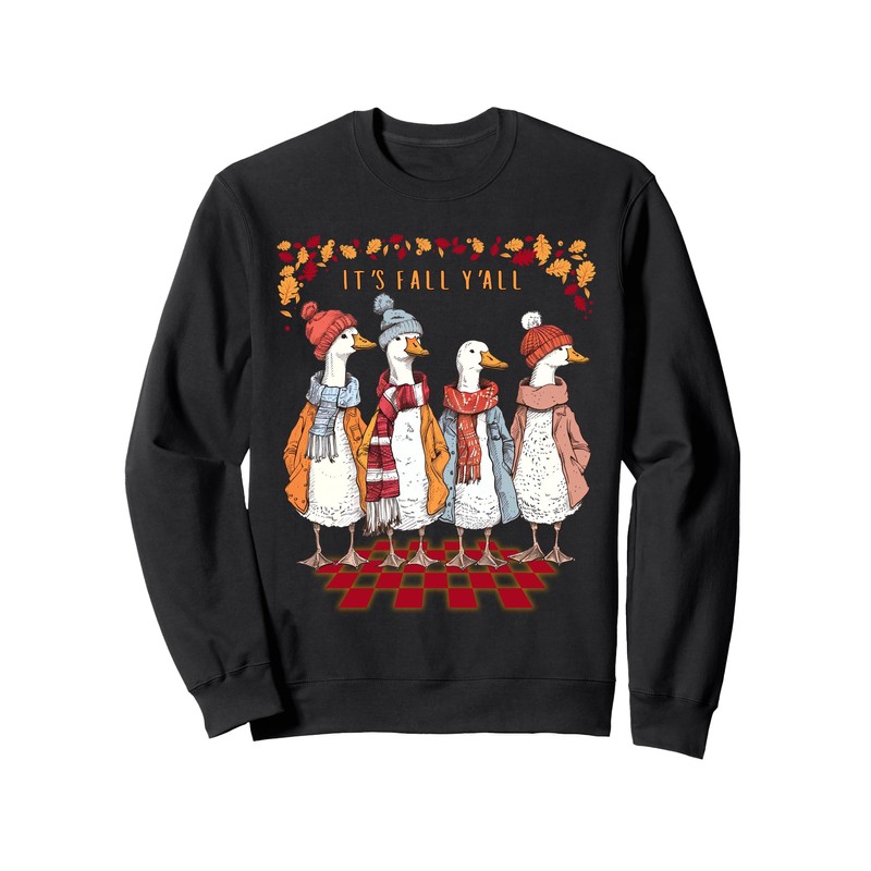 - funny fall goose art, cozy autumn ducks, fall yall design, autumn goose outfit, farmyard humor fall, duck in sweater, autumn vibes artwork, whimsical goose illustration, cartoon fall animals, cute duck squad fall, cozy geese fall, fall farm theme