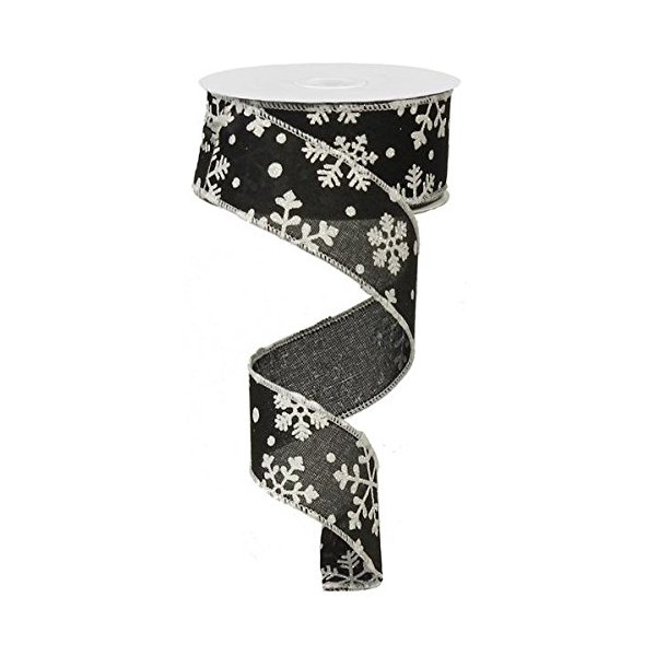 Falling Snow Royal Burlap Wired Edge Ribbon - 1.5" x 10 Yards (Black)