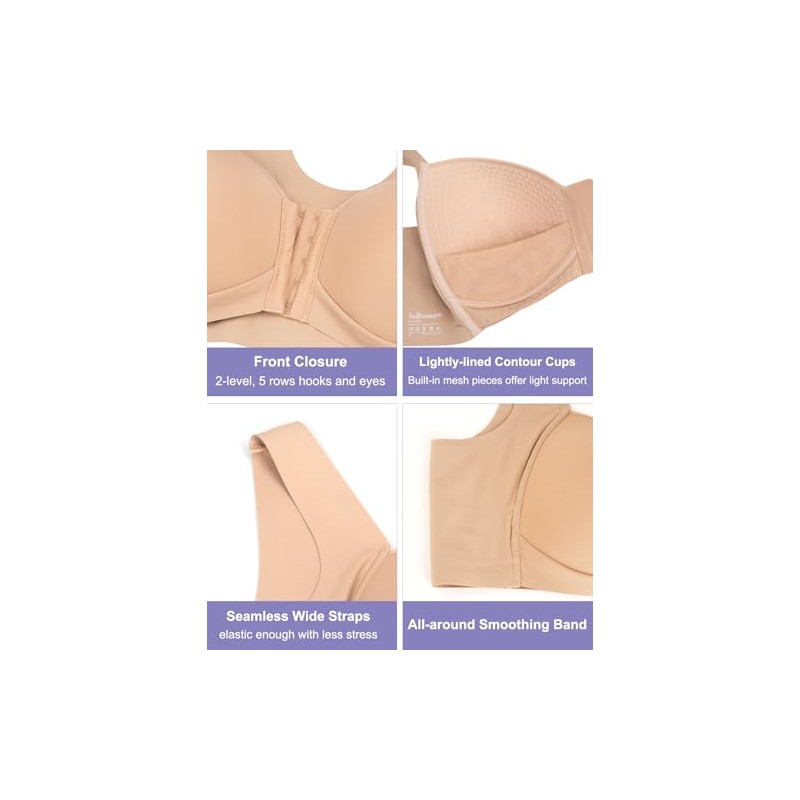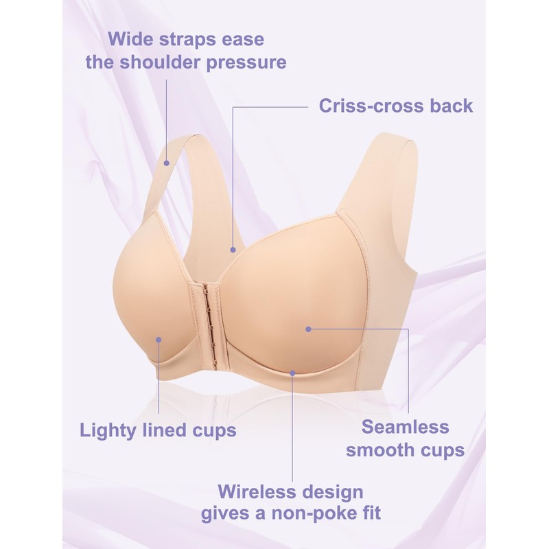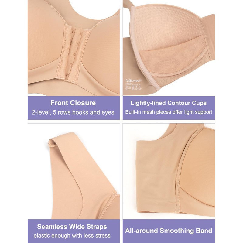 FallSweet Front Closure Wireless Bras Seamless Smooth Hide Back Fat Bra, Beige, 36D