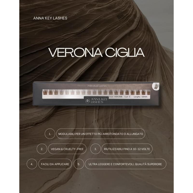 Falsche Wimpern Verona - Anna Key Lashes | 21 braune wiederverwendbare Cluster für einen natürlichen und voluminösen Effekt | geeignet für Wimpernverlängerung DIY | Vegan Friendly - (12 mm)