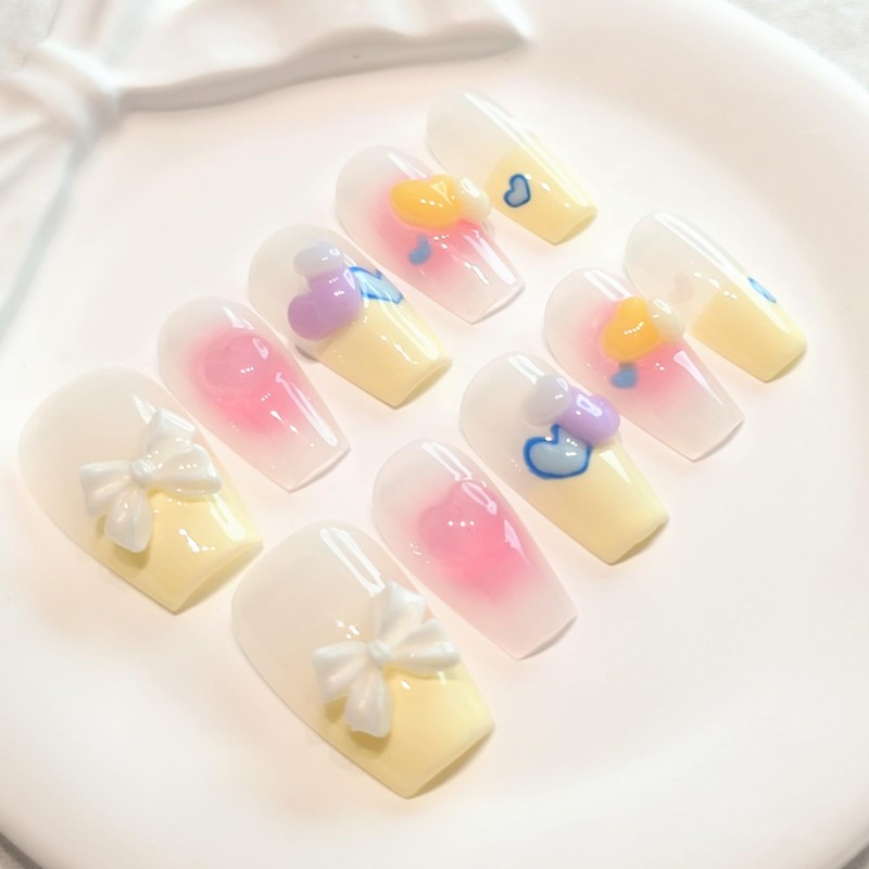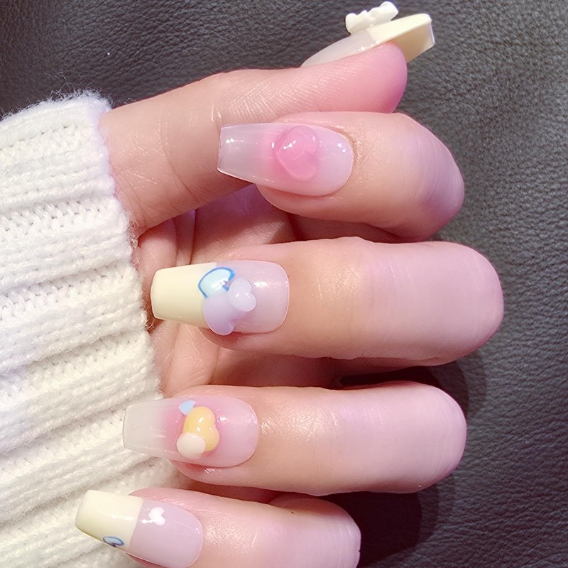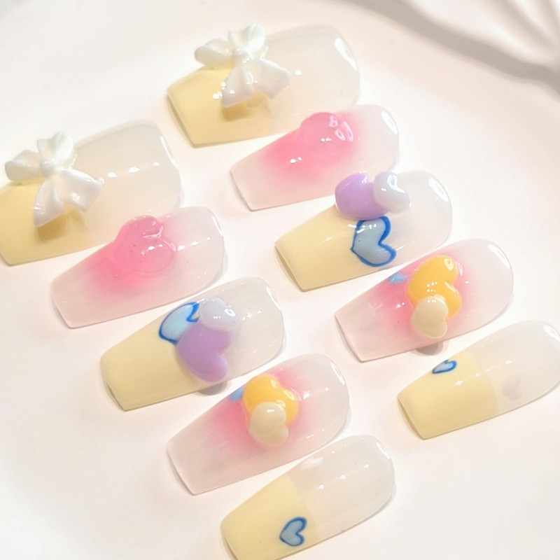 false nails, handmade nail tips, nails, stylish fake nails, cute, three-dimensional, spring, glossy, 3d nails, ultra-thin, spring and summer, fashionable, short, 10 pieces, 100% handmade nails (G