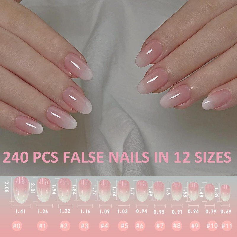 False Nails Tips Set, 240 Pieces, French False Nails for Sticking, Artificial Nails, Short Square Nail Art, Manicure Fake Nails for Women, Oval Gradient 06