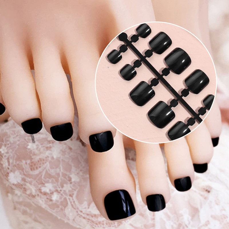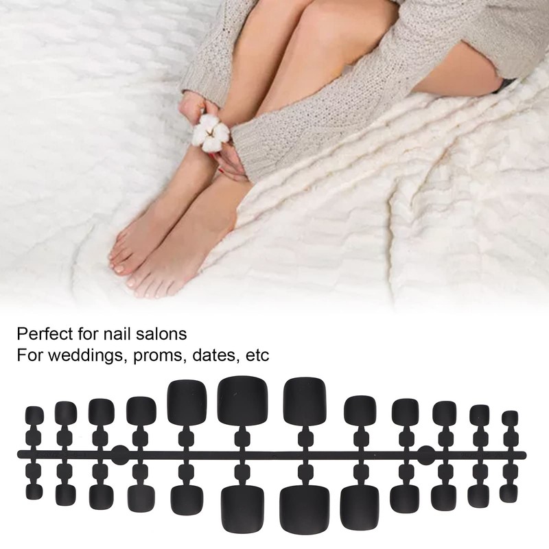 False Toe Nails, Lightweight Artificial Toe Nail Wraps for Weddings (Black)