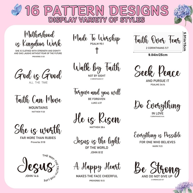 - 16Pcs Black Bible Designs: These iron on transfer for tshirt feature 16pcs inspirational bible verse theme designs, which is highly cost-effective and sufficient to meet the multiple needs