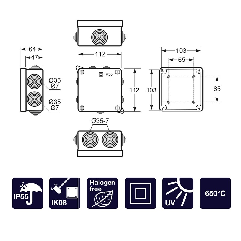 - WITH METRIC CONE: This box has several new cones that allow the direct entry of the cable. This allows faster installation and modification.
