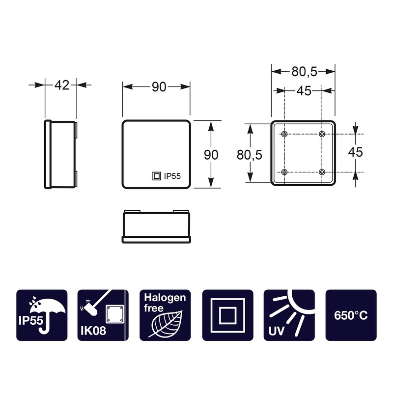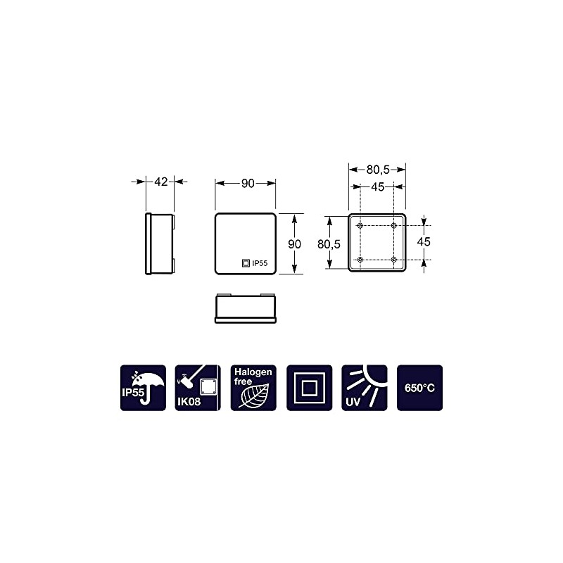 - WATERPROOF: This product is perfect for installations where it needs to be protected against water to a high degree. In addition, its easy installation and neat design make this model the ideal option for installation on patios, porches or in gardens. This product is protected against water penetration according to protection class IP55.