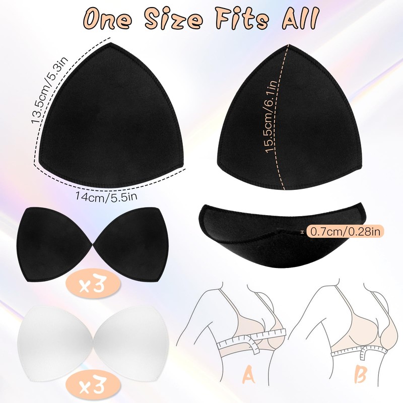 1. 6 pairs of bra pads: the bra pads consist of 3 pairs of white and 3 pairs of black breast pads, fashionable in style and in sufficient quantity, enough for daily use or replacement