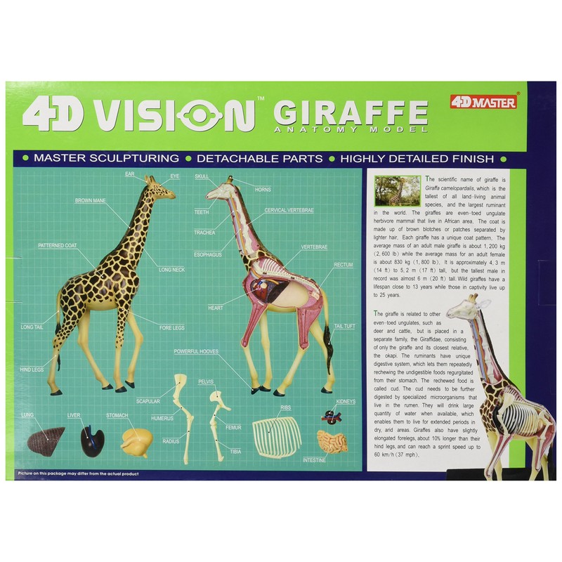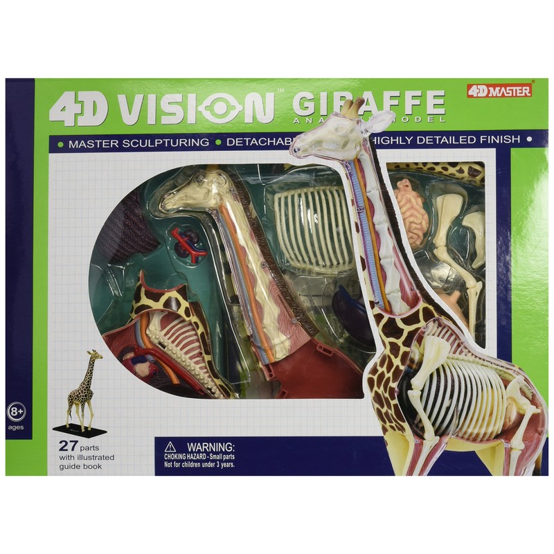 Build your own full skeleton anatomy model of the giraffe! This exceptionally detailed, 14.5" model contains 27 detachable, hand-painted organs and parts and a display stand. Also includes illustrated assembly guide, description of the anatomy, a detailed description of the giraffe's life cycle, eating habits and size along with some fun Q&A to test your knowledge! A nice addition to curriculum for teaching animal science or any child's science fair project related to animal science. Collect the series and have your own animal science museum! Ages 8+.