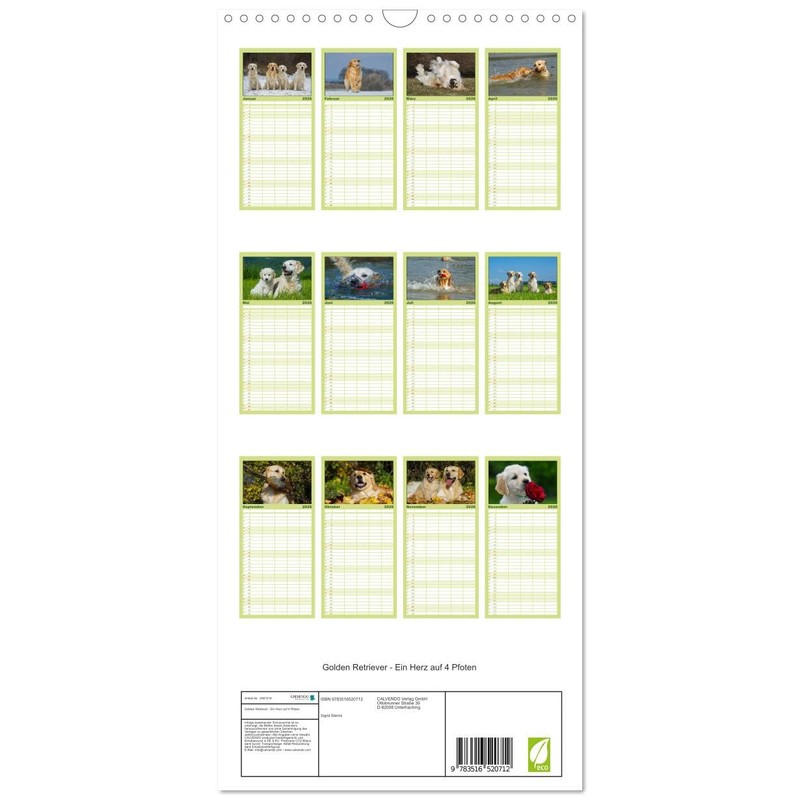 Familienplaner 2026 - Golden Retriever - Ein Herz auf 4 Pfoten mit 5 Spalten (Wandkalender, 21 cm x 45 cm), CALVENDO: Golden Retriever auf 13 ... durch alle Jahreszeiten (CALVENDO Tiere)