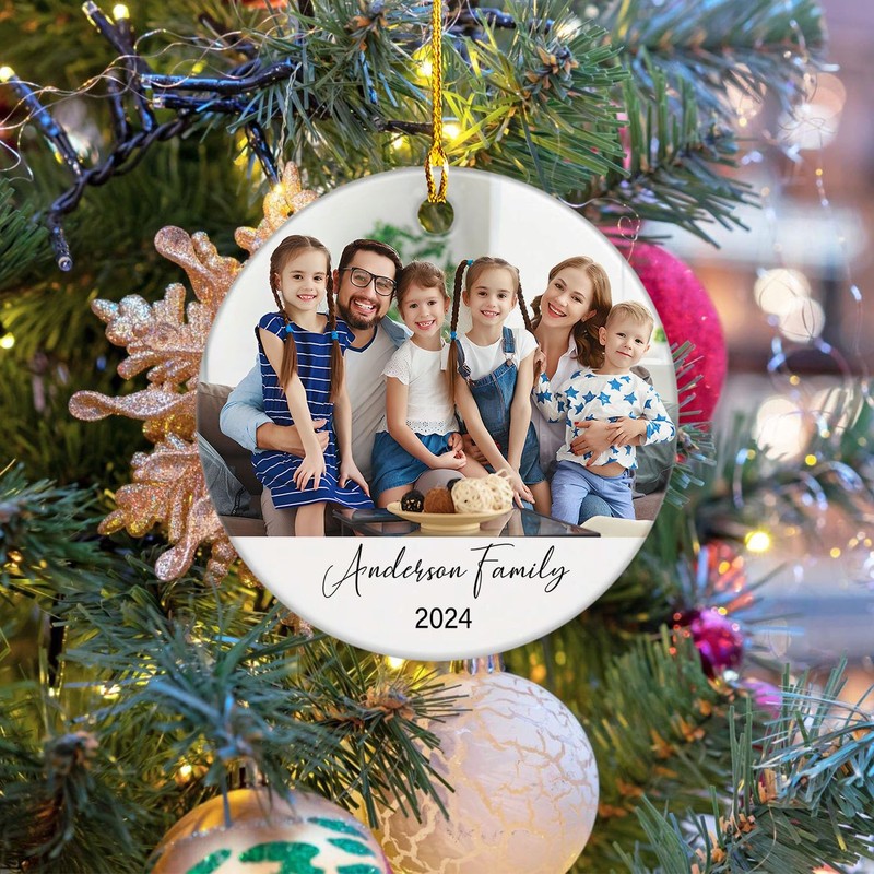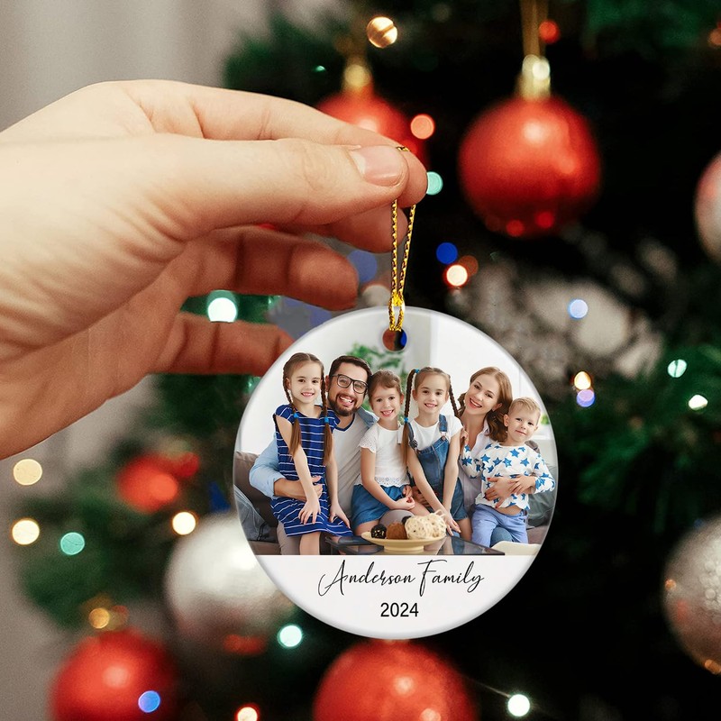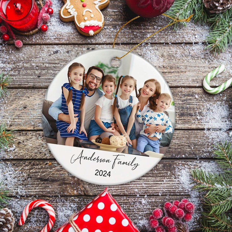 Family Christmas 2024 Ornament Present, Custom Add Photo Family Xmas Ceramic Keepsake Ornament, Personalized New Family Gift, Customized Image Family Christmas Ornament 2024 Gifts, Family Xmas 2024