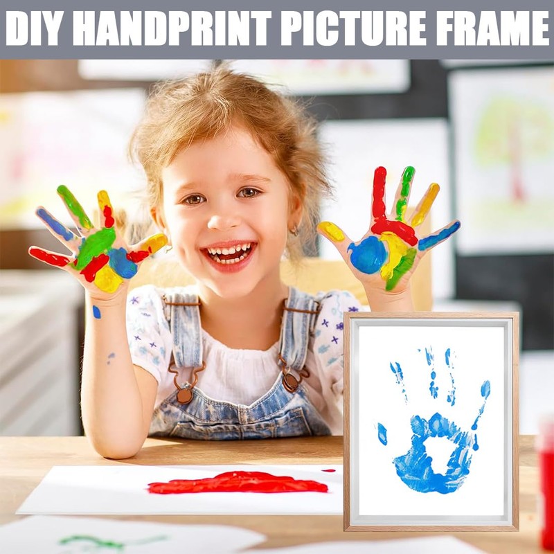 Family Handprint Set, Wooden Frame for Crafts, Endless Gift Set, Non-Toxic Colours, Transparent Sheets, Baby Handprint and Footprint Set, Gift For New and Expecting Parents