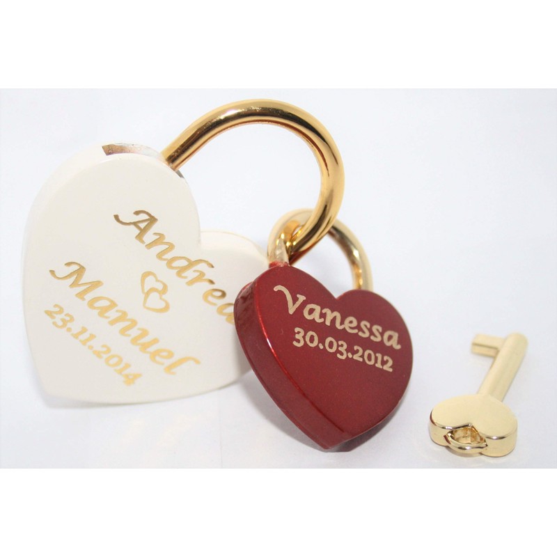 - ♥ Large lock with engraving on both sides in red, white and pink