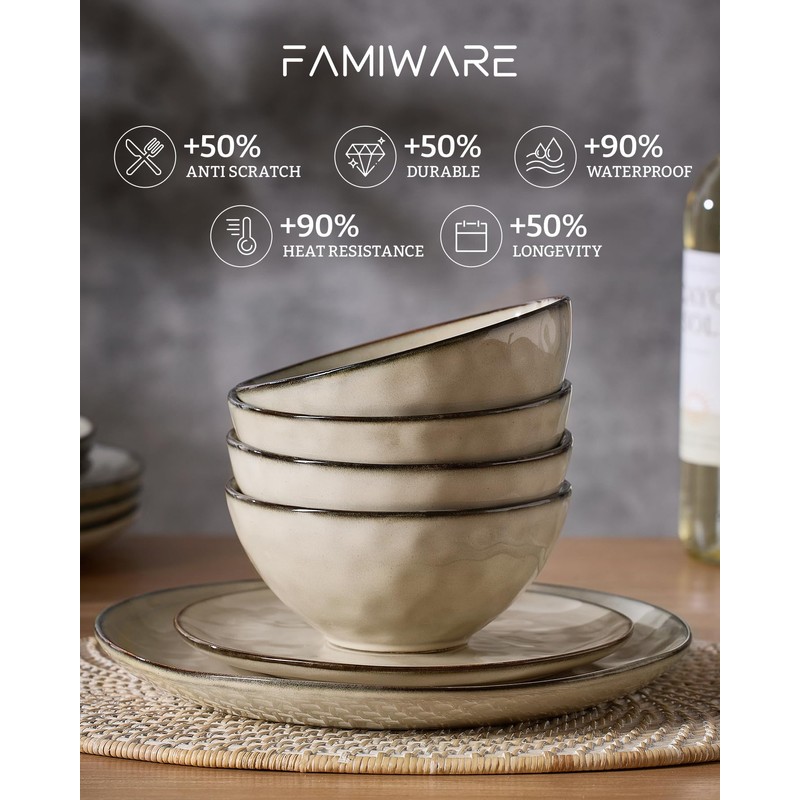 - 【Dishwasher and Microwave Safe】 Famiware plates and bowls are made of premium stoneware. Each plate and bowl is Dishwasher and microwave safe