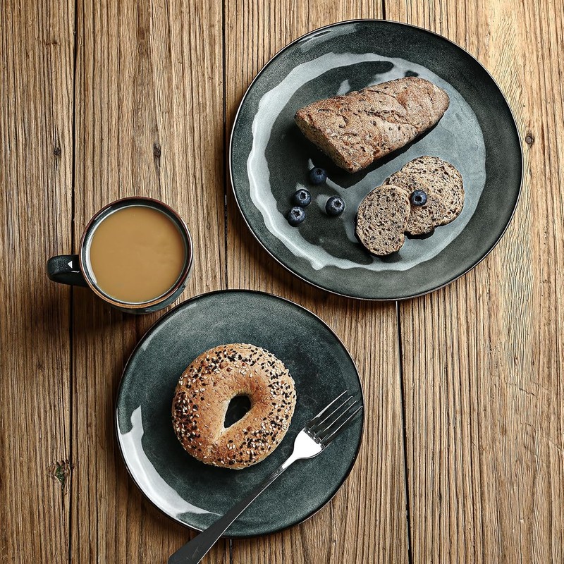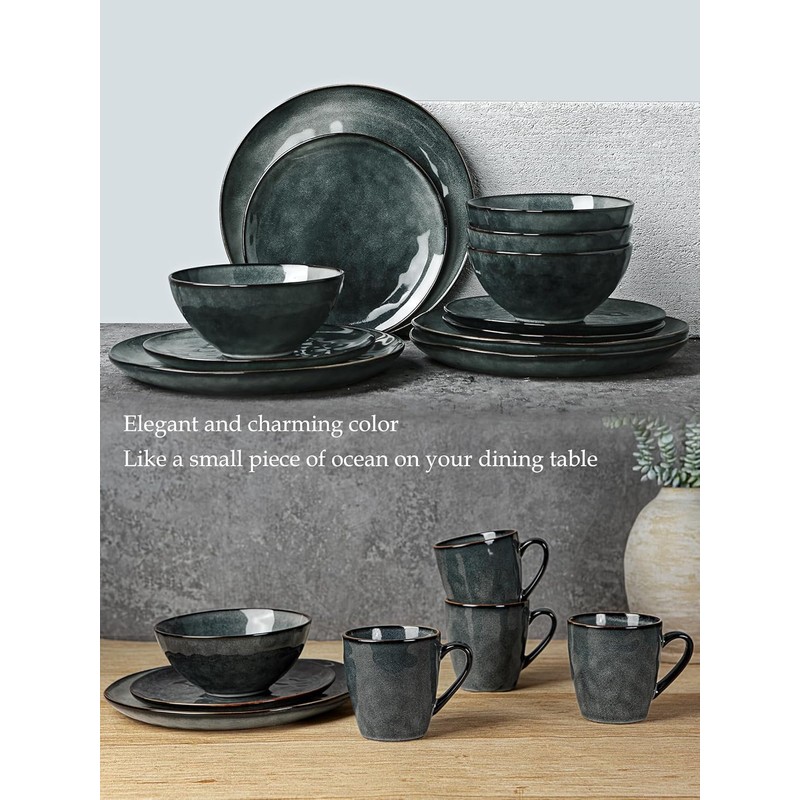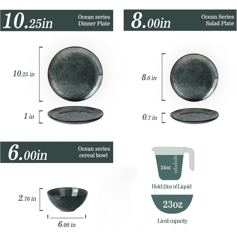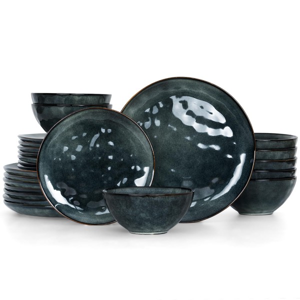 Famiware Dinnerware Sets for 8, Ocean Round 24-Piece Kitchen Plates and Bowls Sets, Microwave and Dishwasher Safe, Scratch Resistant, Deep Forest