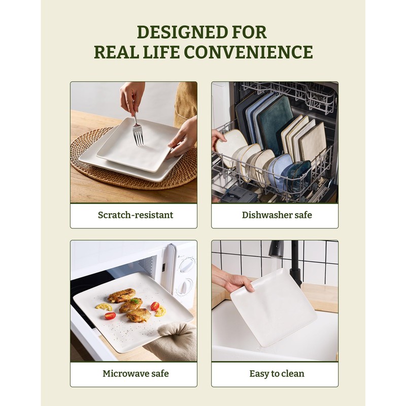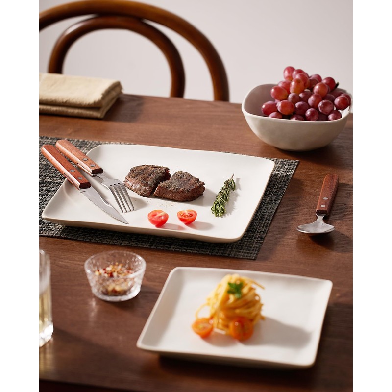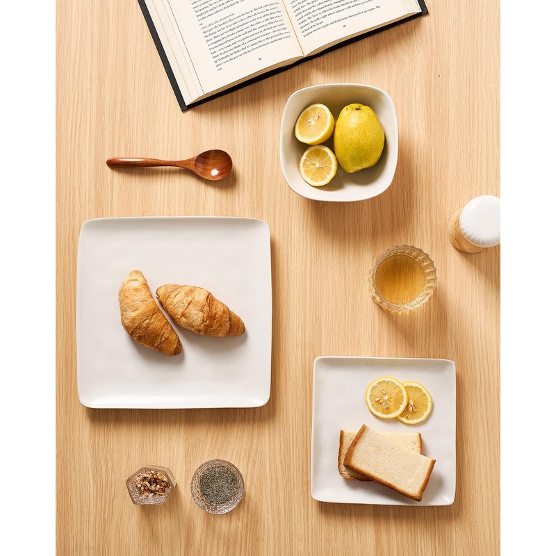 - 【24-Piece Dinnerware Set】This dish sets service for 8 that includes eight large square 9.75 inch dinner plates, eight 7.25 inch salad plates and eight 6 inch cereal bowls. This kitchen plates and bowls set meet the need of your family well.