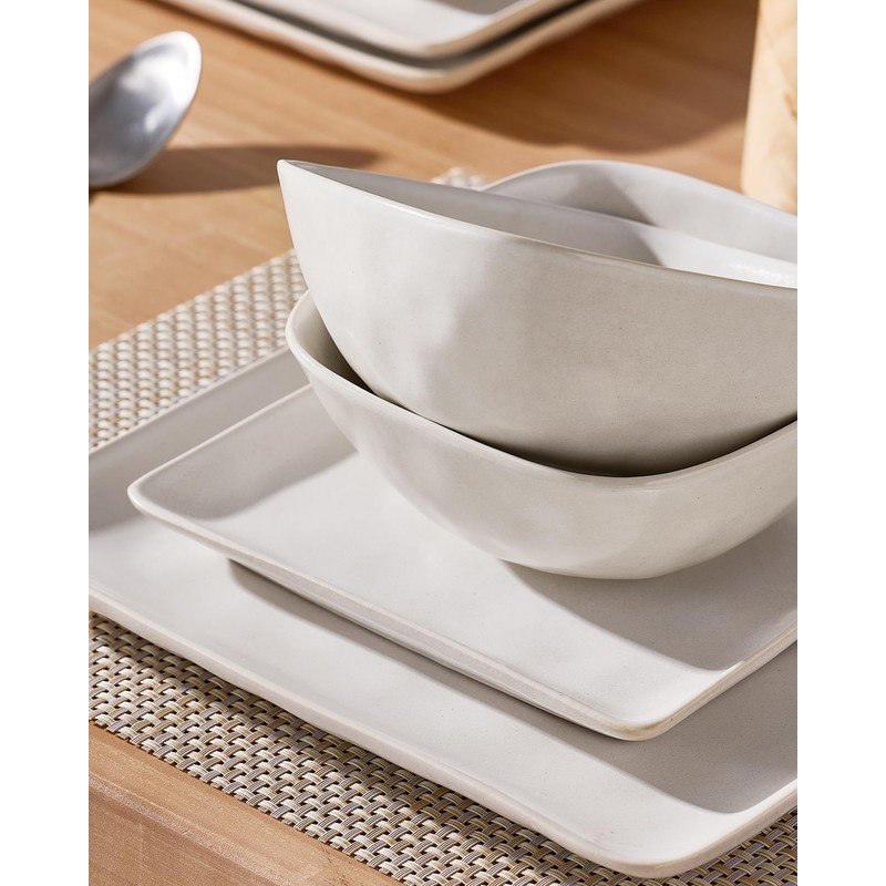 Famiware Dinnerware Sets for 8, Ocean Square 24-Piece Kitchen Plates and Bowls Sets, Microwave and Dishwasher Safe, Scratch Resistant, Matte White