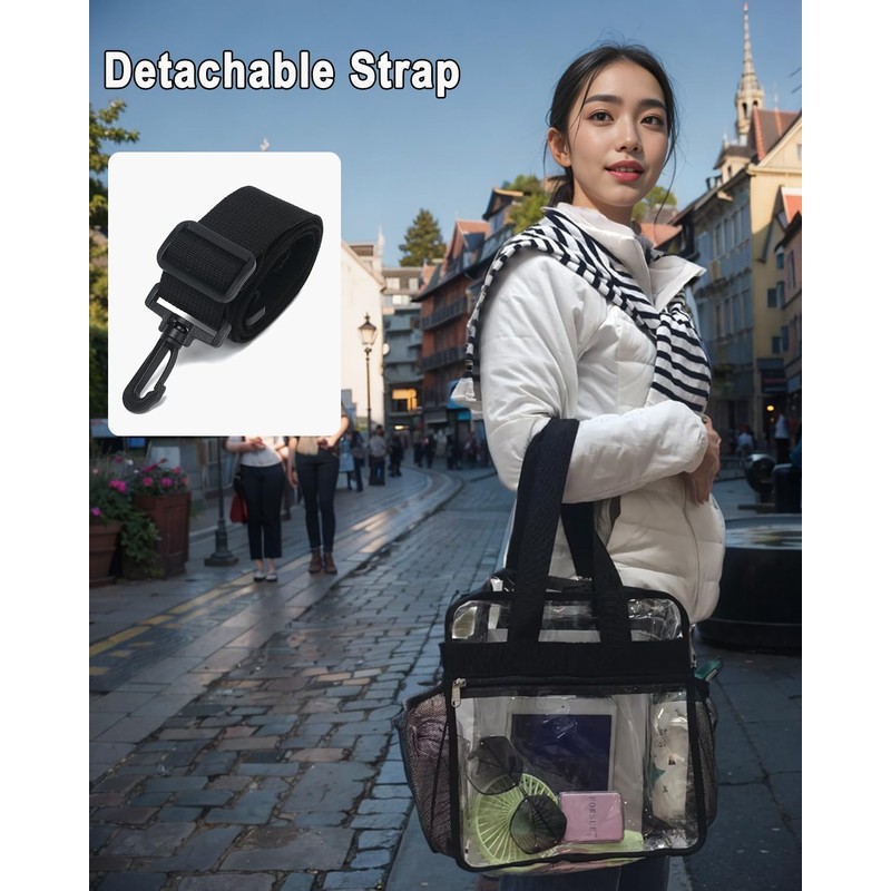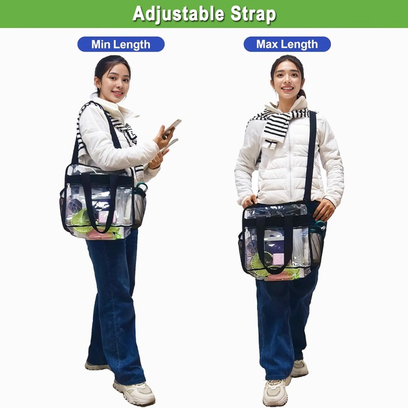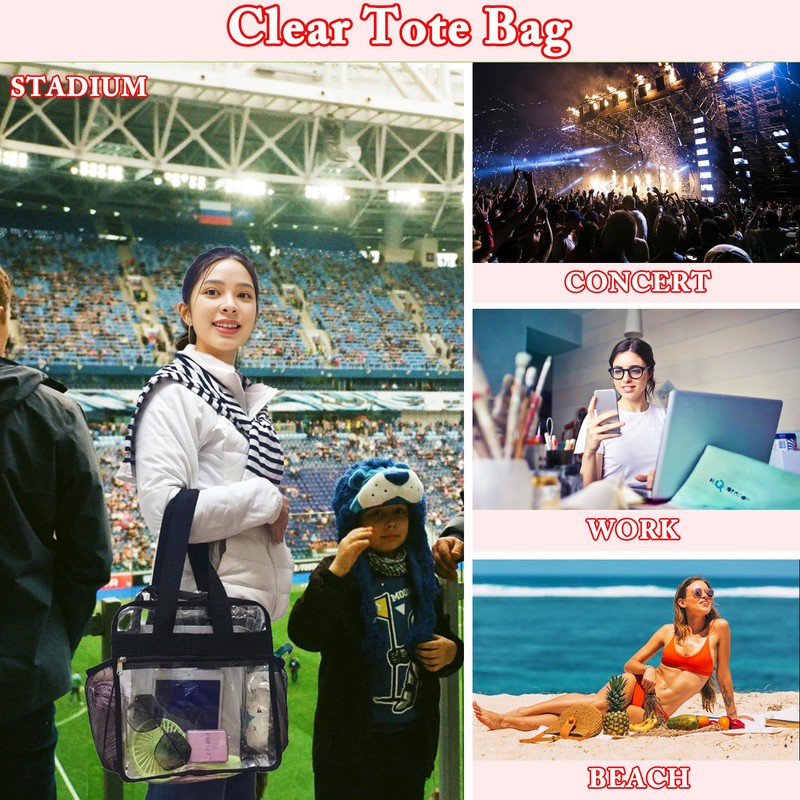- ใ๐๐๐-๐๐ก๐ซ๐จ๐ฎ๐ ๐ก ๐๐๐ฌ๐ข๐ ๐ง & ๐๐ญ๐๐๐ข๐ฎ๐ฆ ๐๐ฉ๐ฉ๐ซ๐จ๐ฏ๐๐ใOur transparent tote bag provides a see-through design. Not only does it allow you to quickly locate and retrieve items without rummaging through your clear shoulder bag, but it also meets Stadium Tournament guidelines. Approved to be used where regulations require clear bags such as football games, concert, airports, events, parks, stadiums and so on.