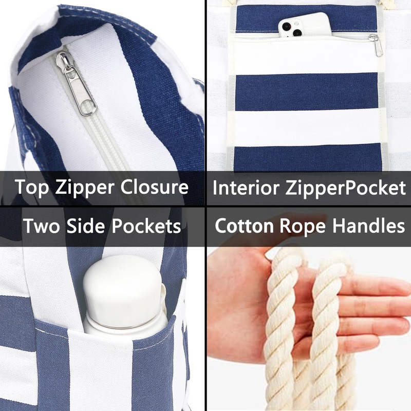 - ???????????? ?????????????? & ???????????? ???????? ????????????The sturdy top zipper closure keeps belongings secure, while the durable cotton rope straps provide a comfortable grip. Designed with a coastal style, these straps are shoulder-friendly, perfect for long days at the beach or on the go.
