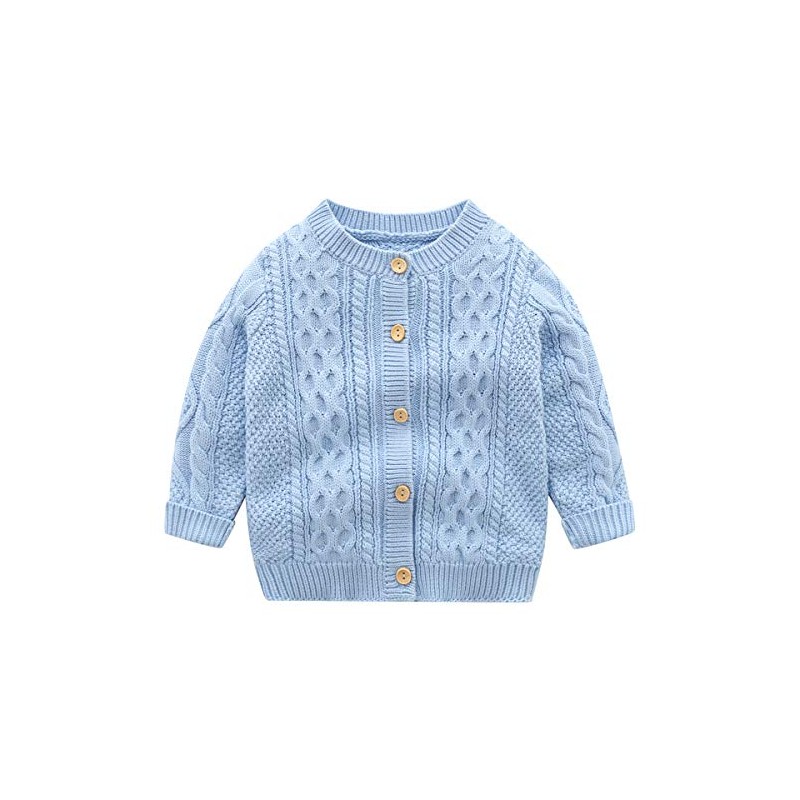 famuka Baby Boy Cardigan Sweaters Crew Neck Knit Coat (Blue, 12-18 Months)