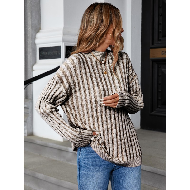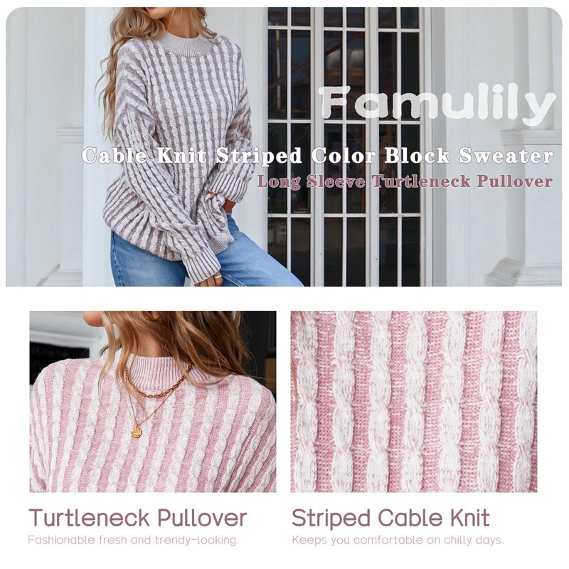 - Cable Knit Sweater: Long Sleeve sweater top comes with color block striped cable knit and ribbed knit detail for a cute vibe. The loose-fit style is suit for any body types.