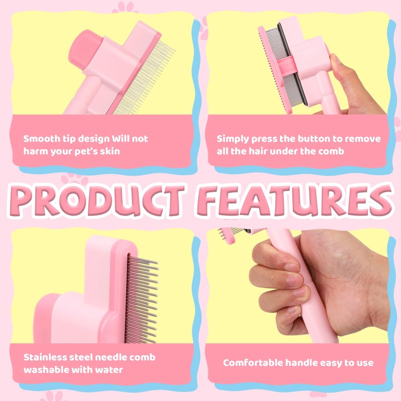 - One Click Self Cleaning Technology: Our self cleaning pet flea comb grooming brush features an innovative release button that instantly ejects trapped fur with a single press eliminating messy cleanup while being gentle enough for both cats and dogs