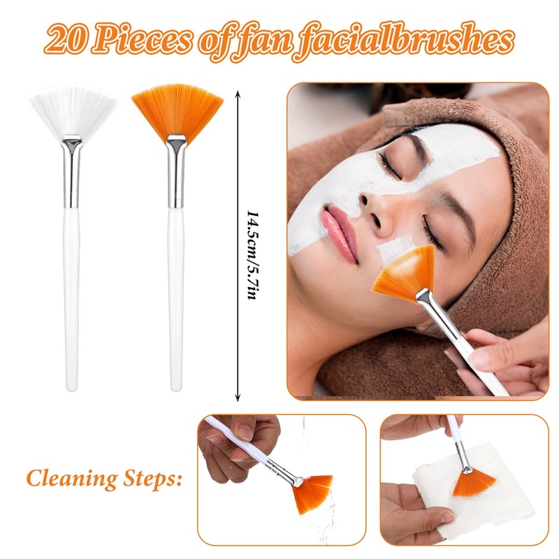 Packing list: 20 fan-shaped face masks brush applicators (yellow, white).
