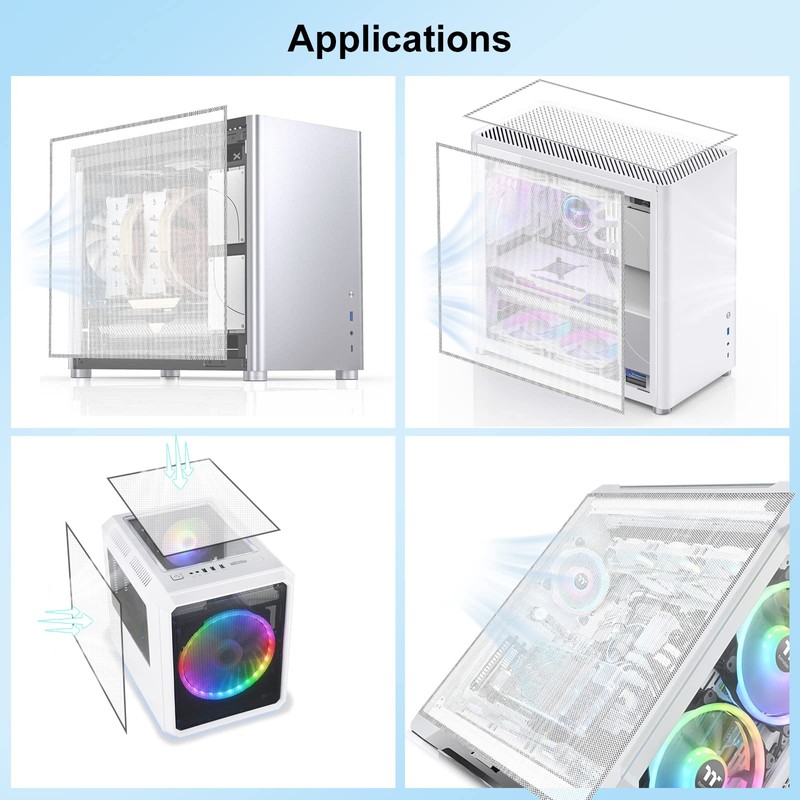 • DUSTPROOF&VENTILATION: Computer cooler fan dust filter mesh can be used instead of the side cover of pc case which effectively increase the ventilation effect and keep device clean to prolong its working life.