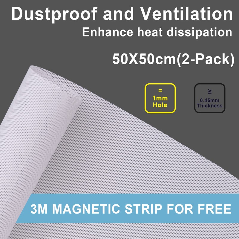 • BIGGER 1MM MESH HOLE: 2 pieces 50x50cm magnetic dust filter pc case fans dustproof cover with 1mm holes doesn't restrict airflow and also the white computer fan dust filter can help good ventilation of chassis.