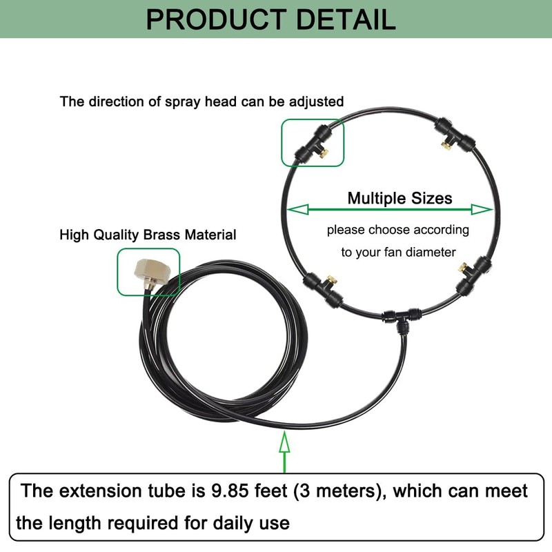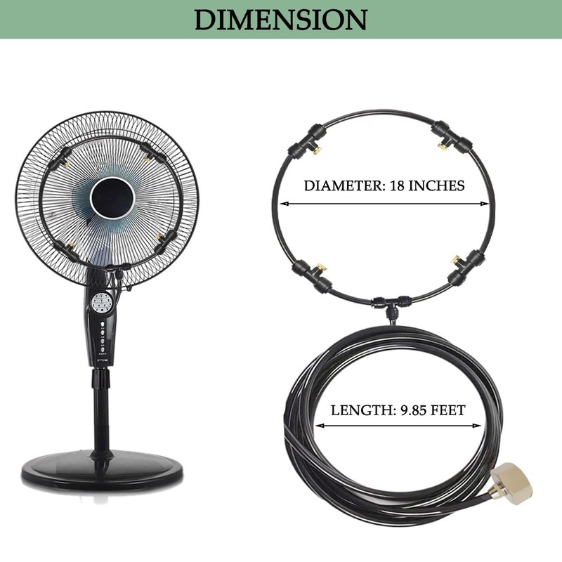 - 【One Minute Misting Transformation】 Fully pr-assembled,its installation is a breeze and takes barely a minute. Our fan misting kit, equipped with 4 secure fastening hoops, instantly transforms your standard fan into a high-performance misting fan, capable of reducing air temperature up to 20°. Ideal for both indoor and outdoor use