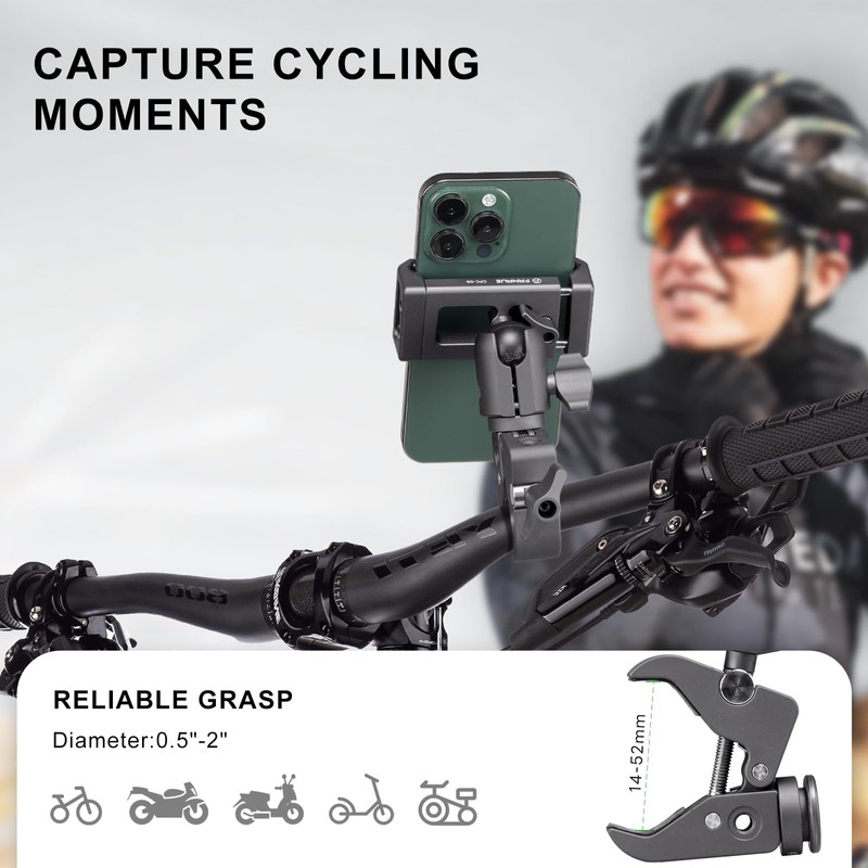• Sturdy and safe: This motorcycle phone holder is made of high-quality alloy and stainless steel to ensure durability and reliability during riding. The phone holder is also equipped with soft silicone to tightly wrap your phone and can protect your phone camera. The handlebar phone holder and phone camera adopt non-contact design to prevent the phone camera from being squeezed and scratched during riding