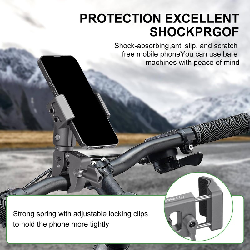 • Double-layer shockproof protection: Both corners of the phone clamp are covered with cushioning rubber pads to prevent your phone from falling. The handlebar clamp ensures your phone remains safe and visible during riding, and the strong spring is matched with an adjustment lock. Ensure that your phone is protected even when riding at high speeds.