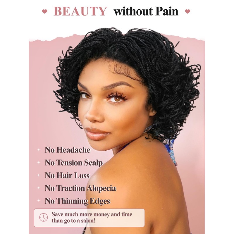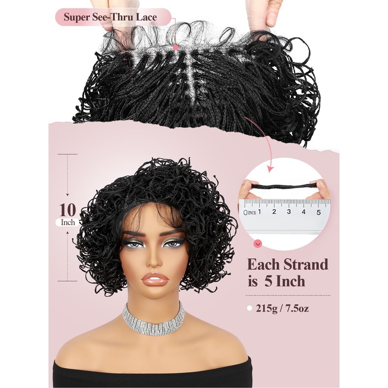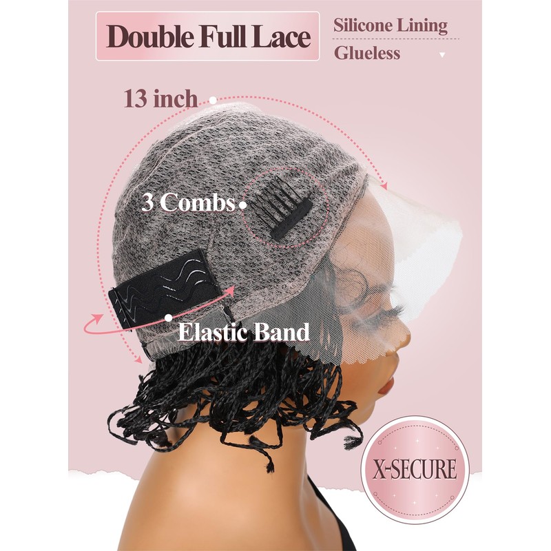 FANCEE Braid Pixie Wig Double Full Lace Curly Box Braided Bob Wig with Baby Hair Pre Plucked Knotless Squrare Part Mini Braid Wig for Black Women
